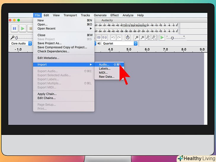 Імпортуйте аудіо в програмне забезпечення для редагування на свій розсуд.ви можете виконати цю просту операцію в будь-якому аудіоредакторі, який дозволяє інвертувати доріжки для одиночного каналу. Хоча точне розташування інструменту у всіх програмах трохи відрізняється, основний процес однаковий для наступних програм:- Audacity