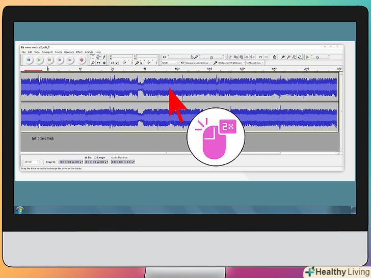 Виберіть один з каналів для інвертування.оскільки вокал включений в обидві доріжки, Виберіть будь-яку з них. Двічі клацніть мишею, щоб виділити всю доріжку, якщо хочете видалити вокал по всій довжині пісні.