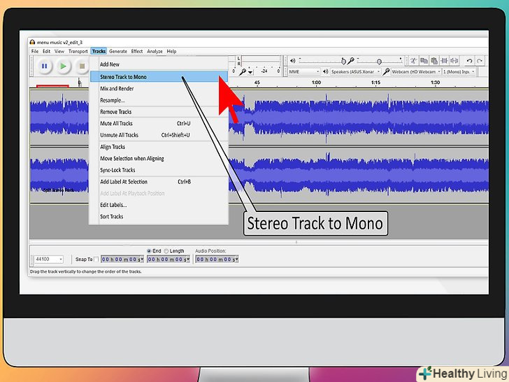 Розбийте канали на окремі доріжки.у більшості програм можна розбити звуковий файл високої якості, записаний в стерео, на дві доріжки. Ви побачите чорну стрілку поруч з назвою доріжки, на яку можна натиснути, потім виберіть "розділити стерео доріжку". У вас повинні вийти окремі канали, з якими можна працювати індивідуально. [1]
