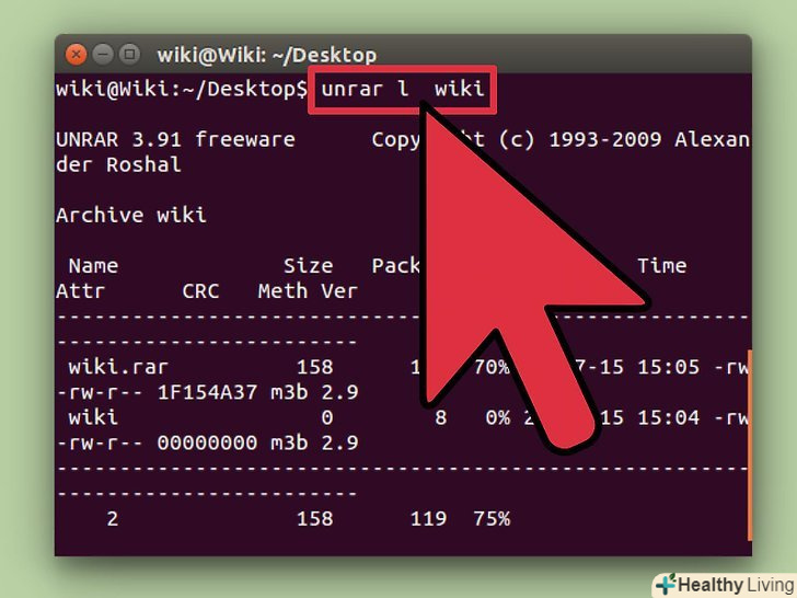 Створіть список файлів в архівах RAR за допомогою команди " unrar l file.rar”.