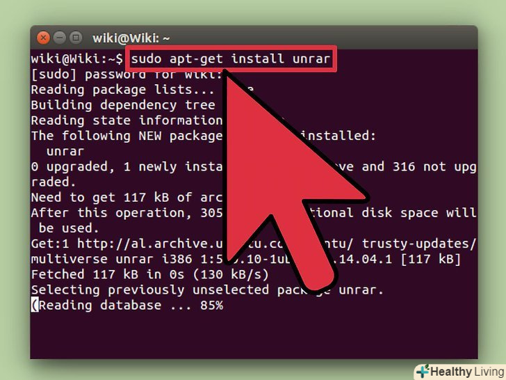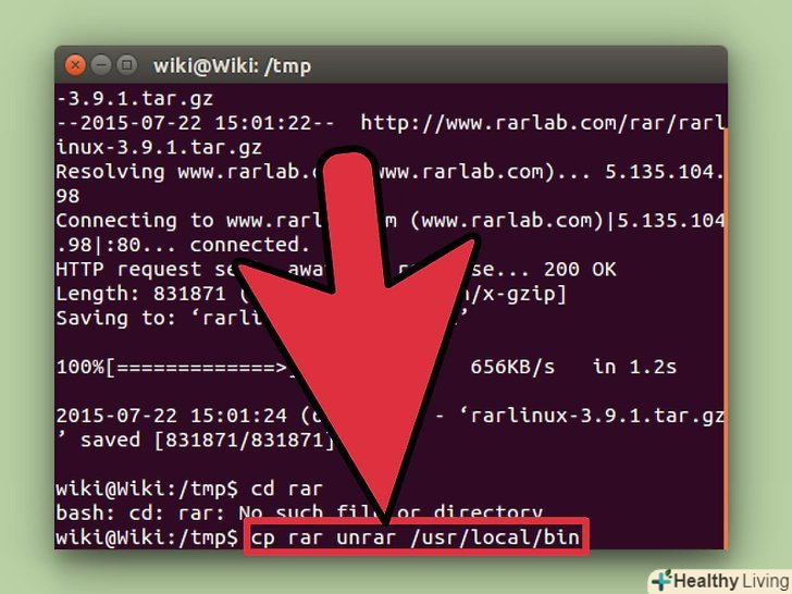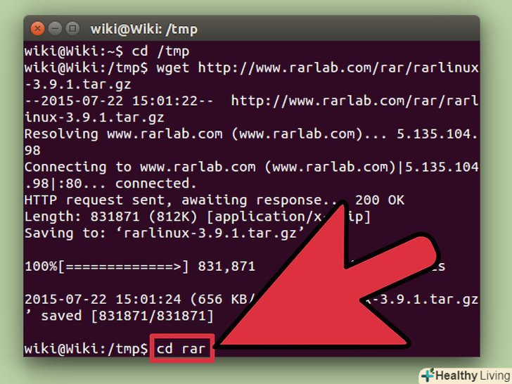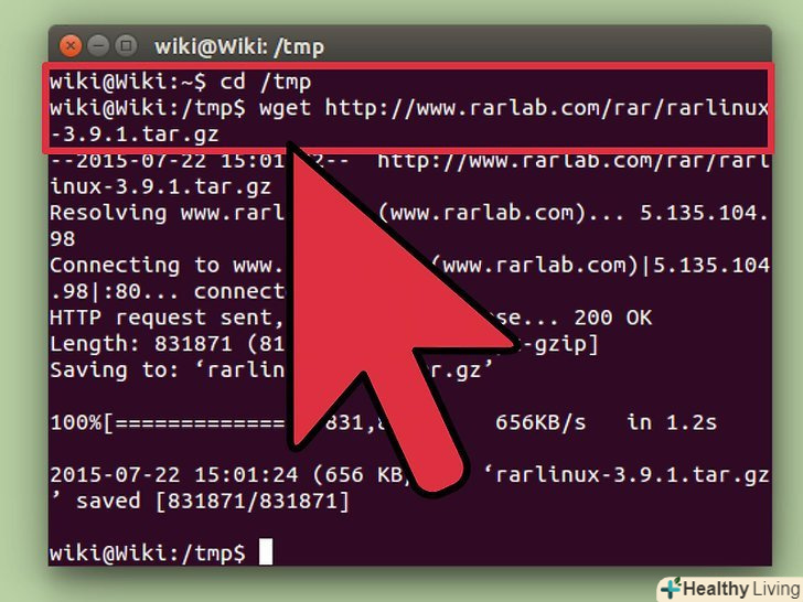 - Введіть " wgethttp://www.rarlab.com/rar/rarlinux-3.9.1.tar.gz ".