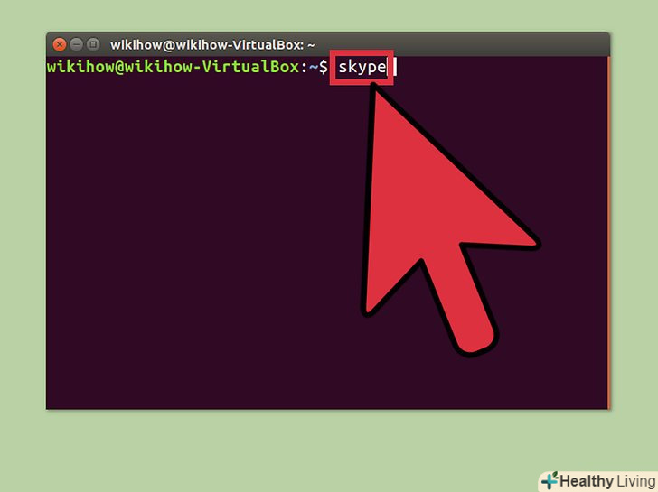 НатиснітьCtrl+Alt+t, щоб відкрити вікно терміналу.хоча цей метод тепер рідко практикується, Skype можна встановити вручну за допомогою скачування пакета на сайті Skype.[5] спочатку спробуйте встановити Skype з партнерського репозиторію (читайте попередній розділ); якщо виникнуть проблеми, скористайтеся цим методом.