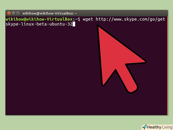 Скачайте Skype за допомогою Wget.шлях до пакету залежить від розрядності використовуваної системи (32-розрядна або 64-розрядна):- У разі 32-розрядної Ubuntu в терміналі введіть:wget http://www.skype.com/go/getskype-linux-beta-ubuntu-32 натисніть ↵ Enter.