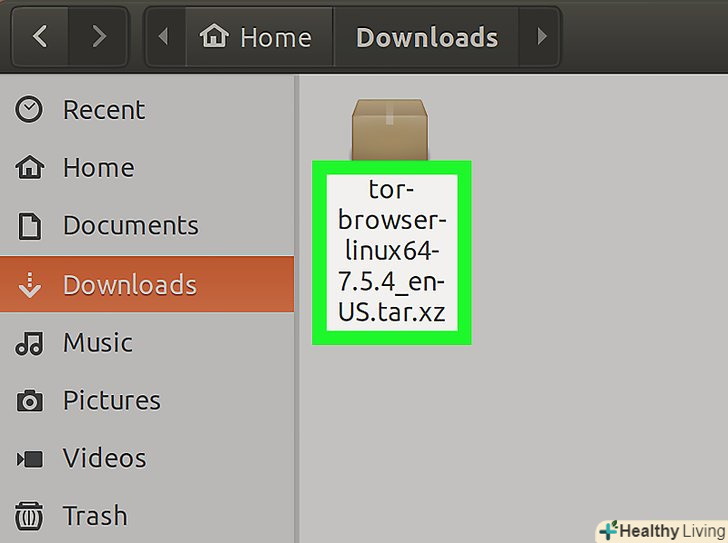 Запишіть або запам'ятайте ім'я інсталяційного файлу. воно відобразиться десь у вікні; необхідно знати мову і версію інсталяційного файлу Tor, щоб встановити цей браузер.- Наприклад, файл з останньою 64-розрядної російськомовної версією Tor називається «tor-browser-linux64-7.5.6_ru.tar.xz».
