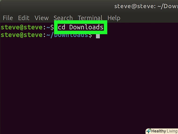 Перейдіть в каталог "Downloads", в якому знаходиться інсталяційний файл Tor. Для цього введіть cd Downloads натисніть ↵ Enter.- Якщо ви завантажили інсталяційний файл Tor в інший каталог, перейдіть в нього.