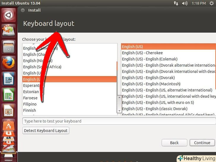 Виберіть мовну розкладку клавіатури.ви можете вибрати їх зі списку або натиснути на кнопку «визначити розкладку клавіатури», щоб операційна система сама визначила потрібні налаштування.