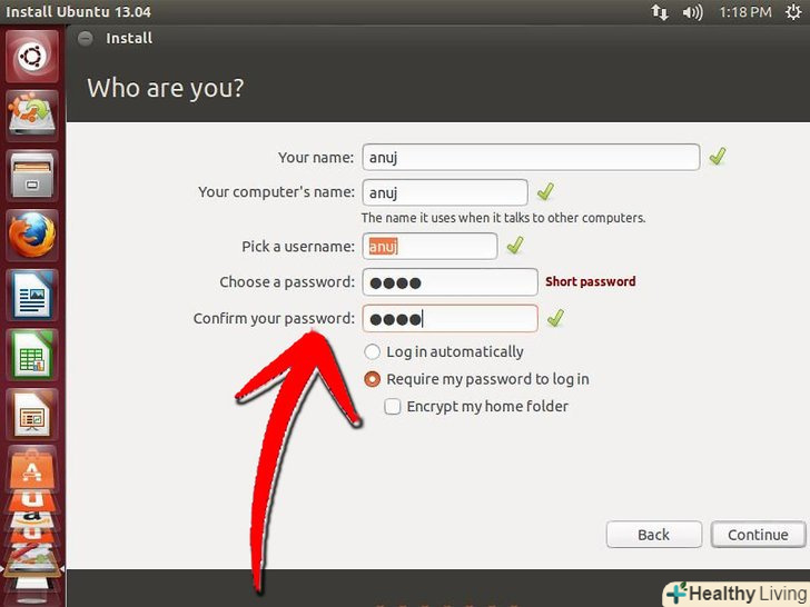 Введіть інформацію для авторизації: ваше ім'я, ім'я комп'ютера, яке відображається в мережі, придумайте ім'я користувача і пароль. Ви можете вирішити, чи буде Ubuntu запускатися автоматично або ж вимагати введення імені користувача і пароля.
