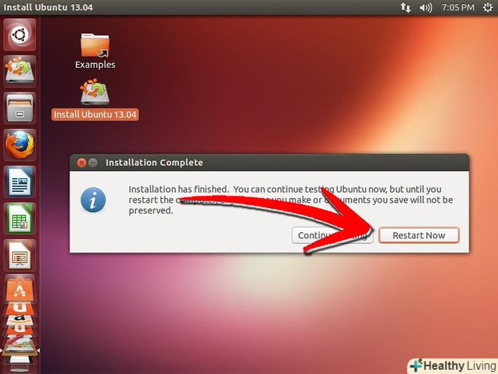 Перезавантажте комп'ютер.після завершення процесу установки вам буде запропоновано перезавантажити комп'ютер зараз або пізніше. Під час перезавантаження з'явиться додаткове меню, в якому можна буде вибрати, яку операційну систему ви хочете запустити: Windows або Ubuntu.[1]