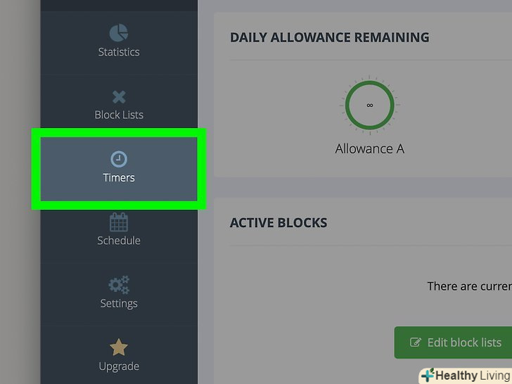 НатиснітьTimers (таймери).ця опція знаходиться в лівому меню і позначена значком у вигляді годинника.