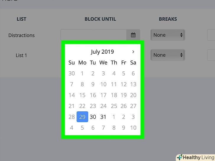 Клацніть по значку у вигляді календаря поруч з ім'ям потрібного списку.зробіть це на сторінці з усіма списками заблокованих сайтів.