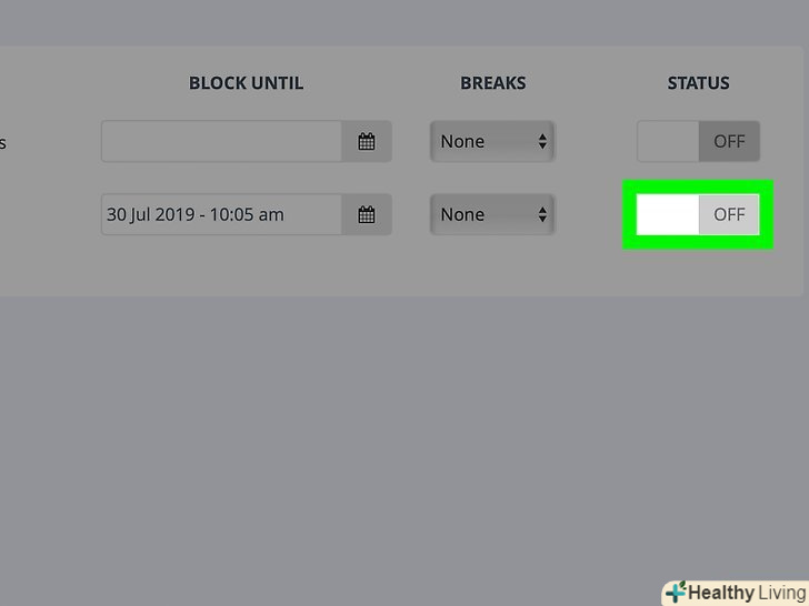 - Натисніть на повзунок у "Cold Turkey". Він повинен стати синім.