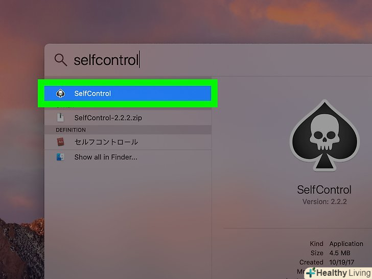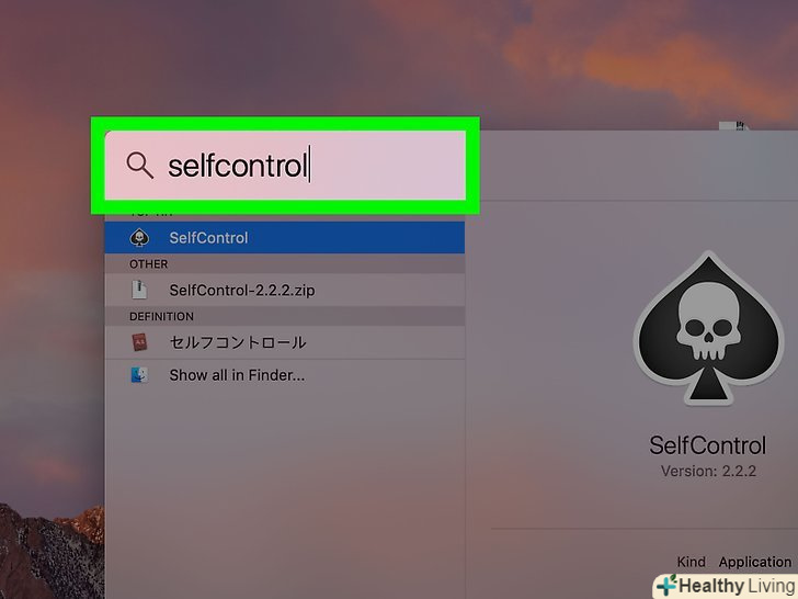 Введітьselfcontrol у рядку пошуку.відобразиться список відповідних файлів і додатків на комп'ютері Mac.