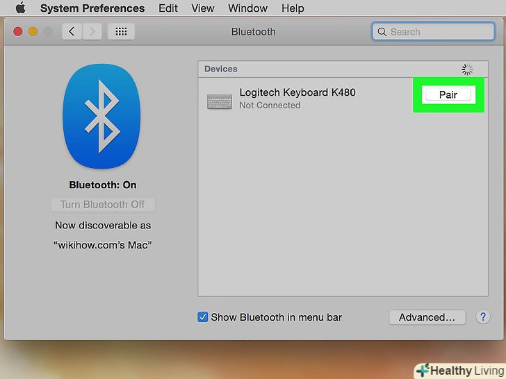 Клацніть поПідключити У клавіатури в списку доступних Bluetooth-пристроїв.коли у клавіатури з'явиться слово» підключено", клавіатура пов'язана з комп'ютером — тепер нею можна користуватися.[2]