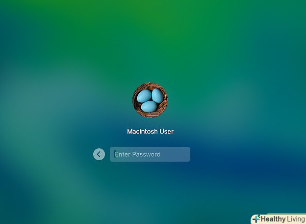 Увійдіть в систему.виберіть свій обліковий запис і введіть пароль.- Якщо на комп'ютері активовано шифрування FileVault, спочатку увійдіть в систему, а потім розблокуйте завантажувальний диск.[2]