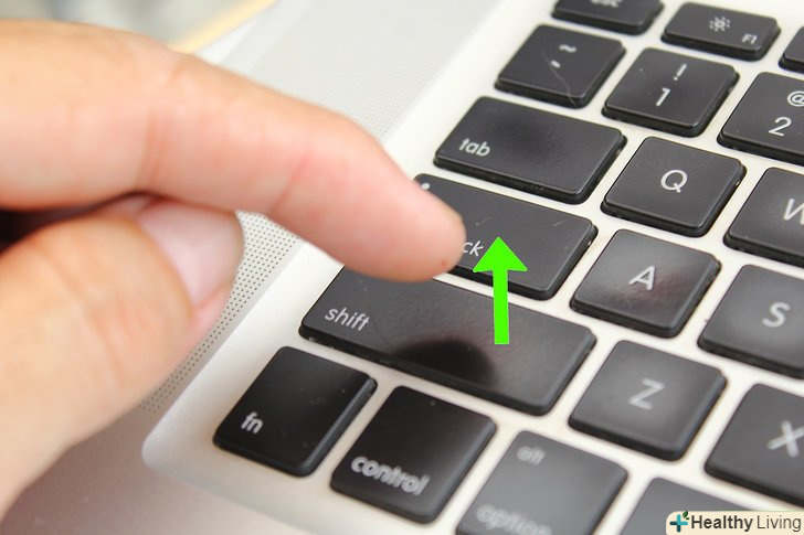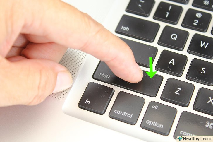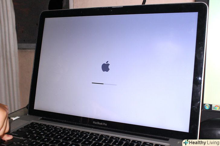 Натисніть і утримуйте клавішу⇧ Shift.зробіть це, як тільки комп'ютер піде на перезавантаження.- Якщо ви використовуєте Bluetooth-клавіатуру, натисніть⇧ Shift після того, як почуєте звук включення комп'ютера (або відразу після появи логотипу Apple).[1]
