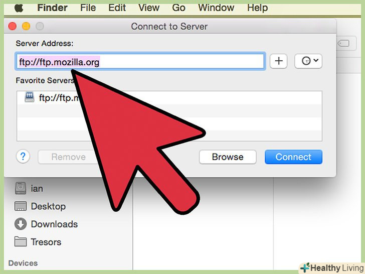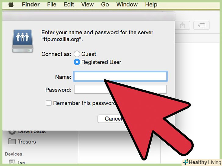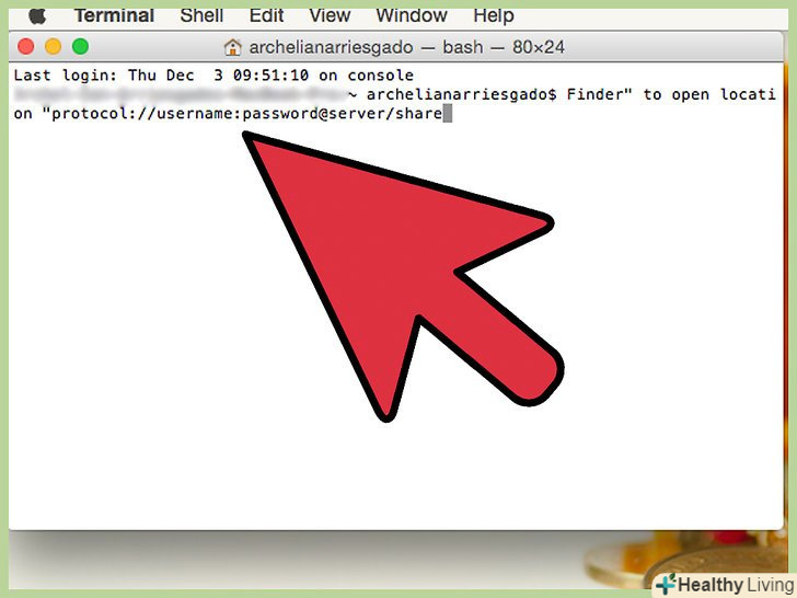 Введіть команду в терміналі. Команда: tell app "Finder" to open location "protocol://имя_пользователя:пароль@сервер/share"