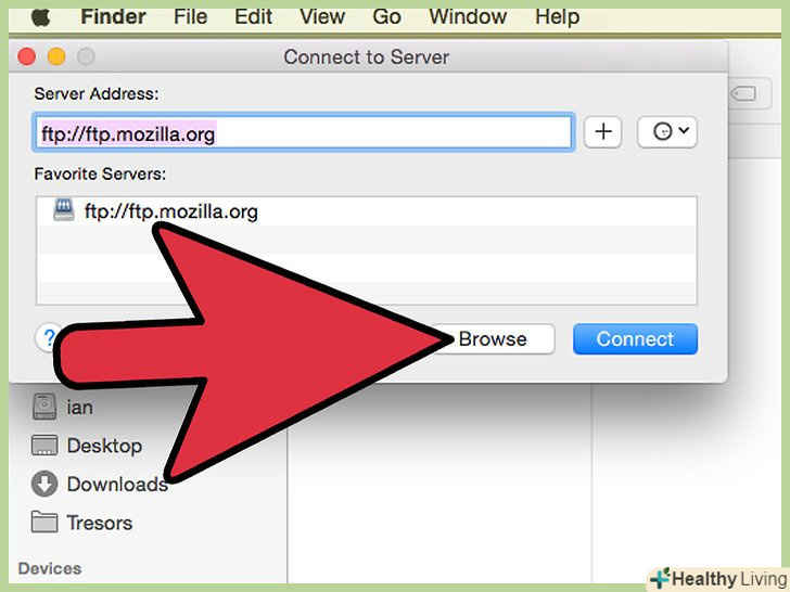 Натисніть "Огляд", а потім клацніть по імені сервера на лівій панелі вікна Finder.