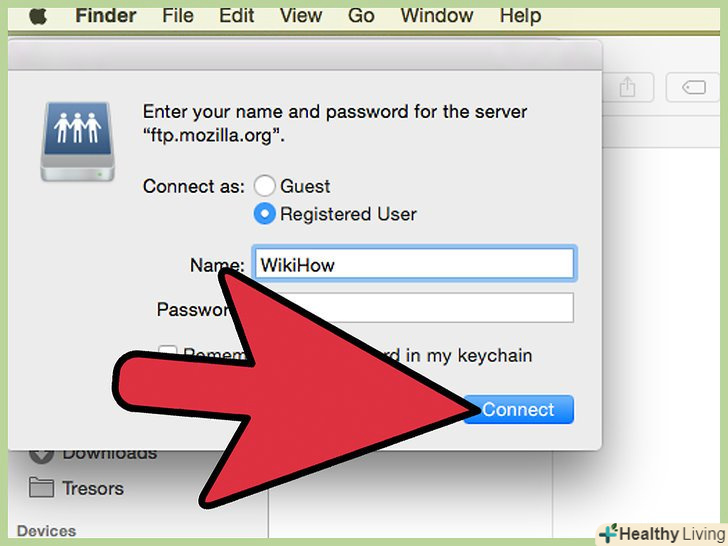 Натисніть "Підключитися", а потім введіть ім'я користувача та пароль (у відповідних рядках). комп'ютер підключиться до вибраного сервера.[2]