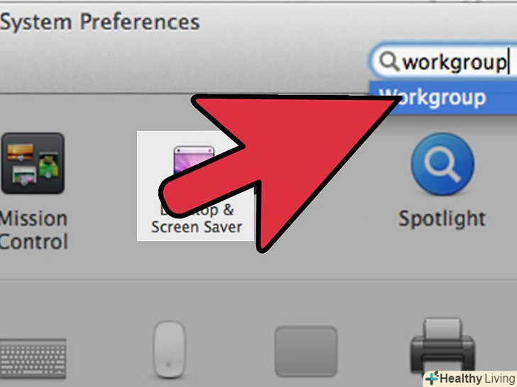 Введіть " Workgroup "(робоча група) в поле пошуку вікна System Preferences.