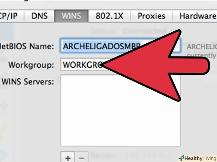 Виберіть назву робочої групи Windows, до якої Ви хочете отримати доступ, за допомогою випадаючого меню поруч з написом "Workgroup."- Якщо ваш Mac знаходиться десь в офісі, який обслуговують відразу кілька серверів, вам буде потрібно вказати також точну IP-адресу в поле "WINS Servers", який можна отримати від мережевого адміністратора.