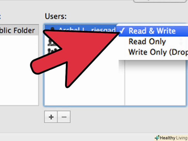 Змініть ваші права доступу. Налаштування за замовчуванням дозволяють всім користувачам лише Перегляд і читання файлів. Змінити це можна лише за допомогою зміни налаштувань прав доступу.- Праворуч від імені користувача будуть вказані його права доступу. Клацніть на стрілочку поруч з " Read Only "(тільки перегляд), щоб внести необхідні зміни.