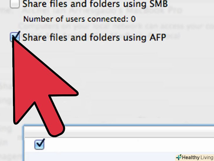- Виберіть " Share files and folders using AFP "(надати спільний доступ до файлів і папок по протоколу AFP)