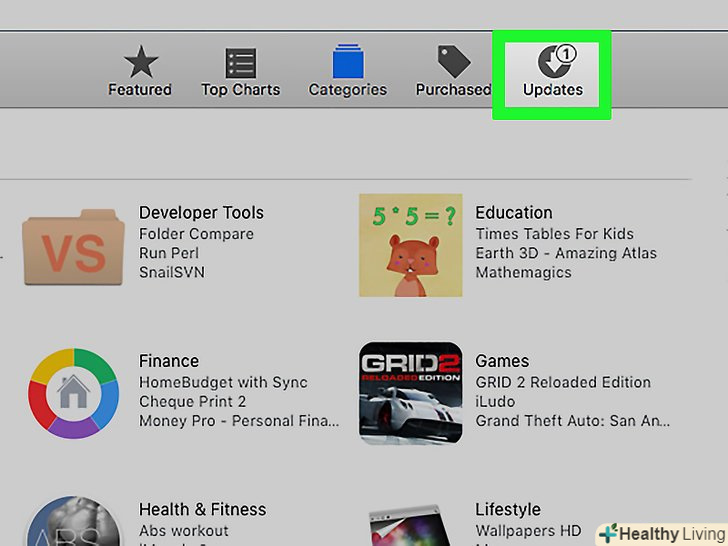 Клацніть по вкладціОновлення. ви знайдете цю опцію в правій частині рядка параметрів у верхній частині вікна App Store.