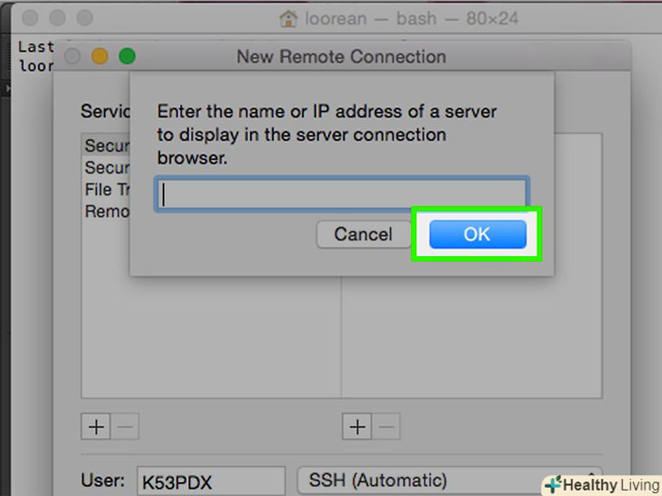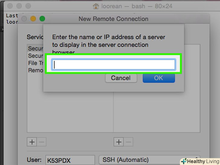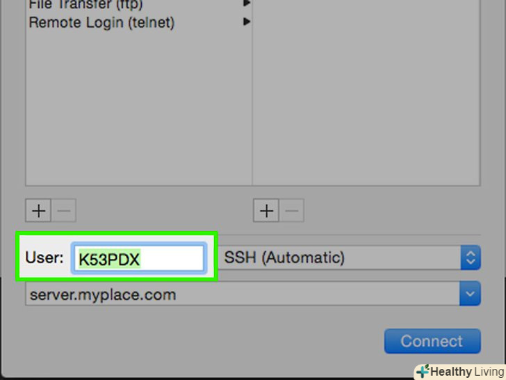 Введіть ім'я хоста або IP адресу.в поле введення вгорі вікна "нове з'єднання" введіть адресу сервера, до якого ви хочете підключитися.- У вас повинен бути обліковий запис для входу.