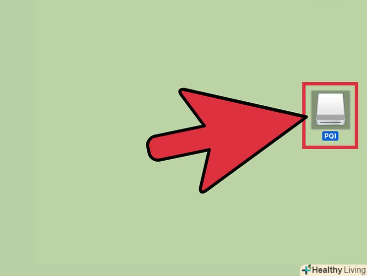 Зачекайте, поки система розпізнає накопичувач.його значок з'явиться на робочому столі.- Якщо значок флеш-накопичувача не відобразився, відключіть і знову підключіть накопичувач до комп'ютера або підключіть накопичувач до іншого порту USB. Якщо до комп'ютера підключено кілька USB-пристроїв, вимкніть ті, якими ви не користуєтеся.