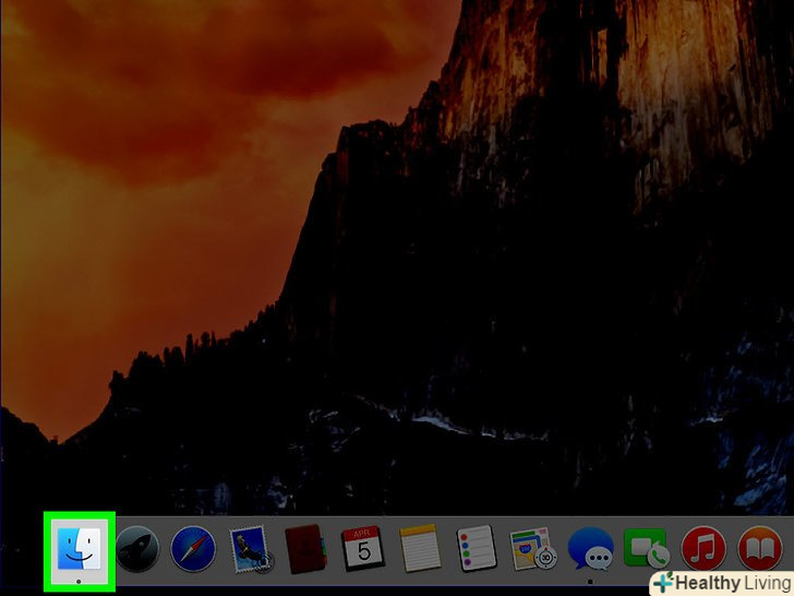 Відкрийте меню Finder, натиснувши на біло-синю іконку усміхненого обличчя на панелі Dock.на робочому столі відкриється вікно Finder.