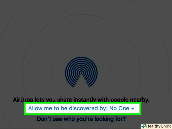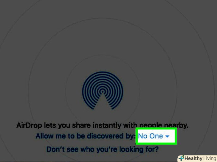 Виберіть < span class="nowrap" title="This is not a clickable button; it illustrates the button one should find." style="font-family: Segoe UI, Frutiger, Frutiger Linotype, Dejavu Sans, Helvetica Neue, Arial, sans-serif;letter-spacing:0px;padding:0em .6em; border:1px solid; border-color:#AAA #555 #555 #AAA; -moz-border-radius: 0px; -webkit-border-radius: 0px; border-radius: 0px; background-color: #F2F2F2; background-image: -moz-linear-gradient(top, #FCFCFC, #E0E0E0); background-image: -o-linear-gradient(top, #FCFCFC, #E0E0E0); background-image:-webkit-linear-gradient(top, #FCFCFC, #E0E0E0); background-image: linear-gradient (top, #FCFCFC, #E0E0E0); " > нікому, щоб пристрої, що знаходяться поблизу, не змогли виявити Mac за допомогою AirDrop.<