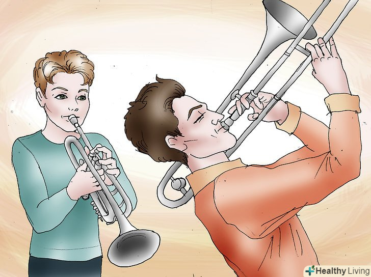 Врахуйте Ваші розміри.якщо ви починаєте в середній школі, і ваш зріст менше, ніж у середнього учня, туба або тромбон не може бути правильним для вас інструментом. Ви можете замість цього спробувати трубу або корнет.- Якщо ви молодше або як і раніше втрачаєте зуби, ви можете знайти важким відтворити звук на деяких мідних інструментах, тому що ваші зуби не дуже міцні.