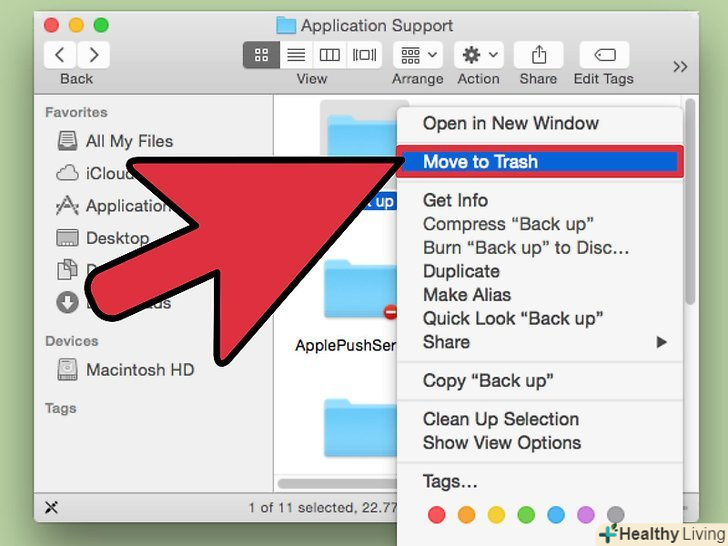 Видаліть непотрібні старі резервні копії системи, а також копії даних з iPod, iPhone, або iPad для відновлення системи на них.- Щоб знайти ці резервні копії, відкрийте категоріюГоловна (Home) → Бібліотека (Library) → Група програмного забезпечення (Application Support) → MobileSync → Резервні копії (або Backup). Знайдіть нові копії та старі копії. Видаліть старі копії.