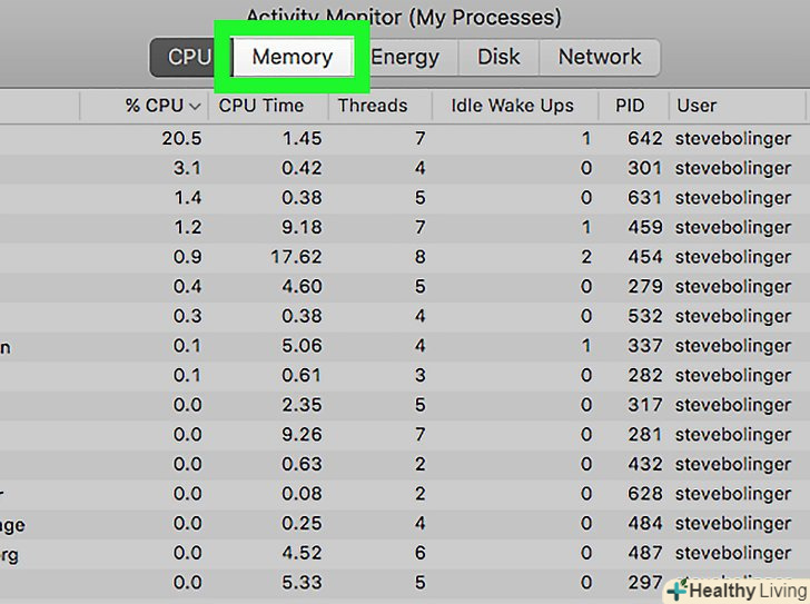Перейдіть на вкладкуПам'ять у верхній частині вікна, поруч з вкладкою «ЦП».