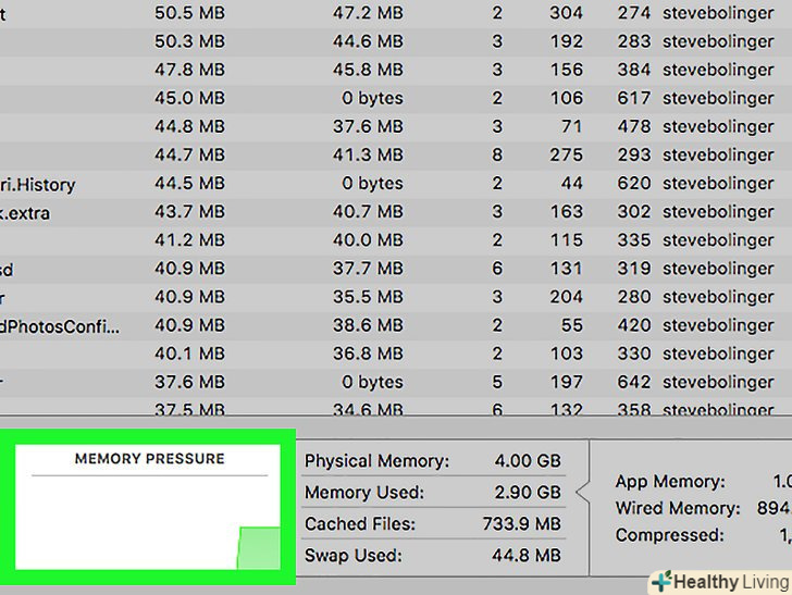 - Якщо графік навантаження горить червоним, то пам'ять використовується на межі. Закрийте одне або кілька додатків. Можливо, Вам варто додати в Mac більше оперативної пам'яті.