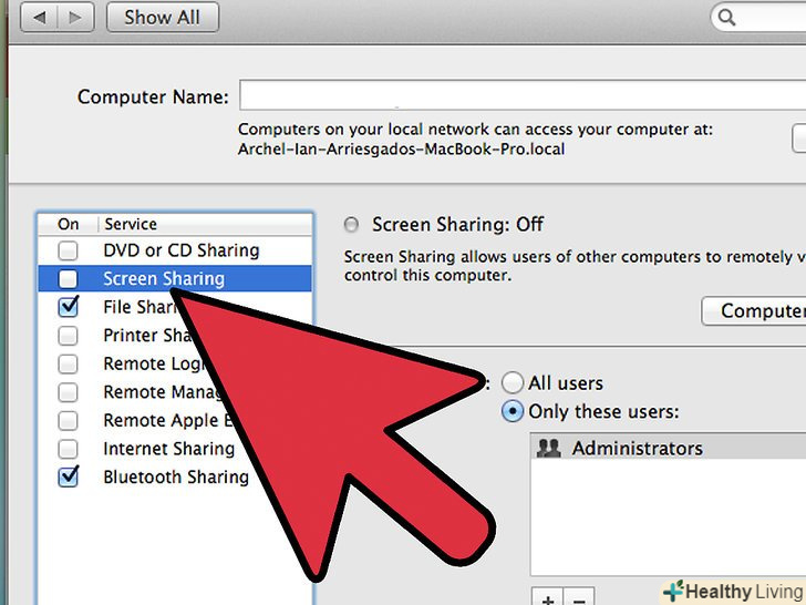 Зверху списку служб знаходитьсяScreen Sharing. Виберіть і включіть On.
