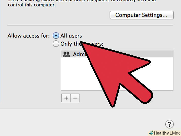 Якщо ви не використовуєте ScreenSharing або JollysFastVNC, то вам потрібно:- Натисніть на кнопкуComputer Settings.
