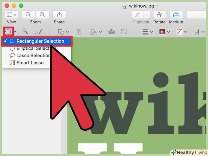 Натисніть на значок пунктирного прямокутника на панелі інструментів, після чого натисніть на опцію «вибір прямокутником».[4]