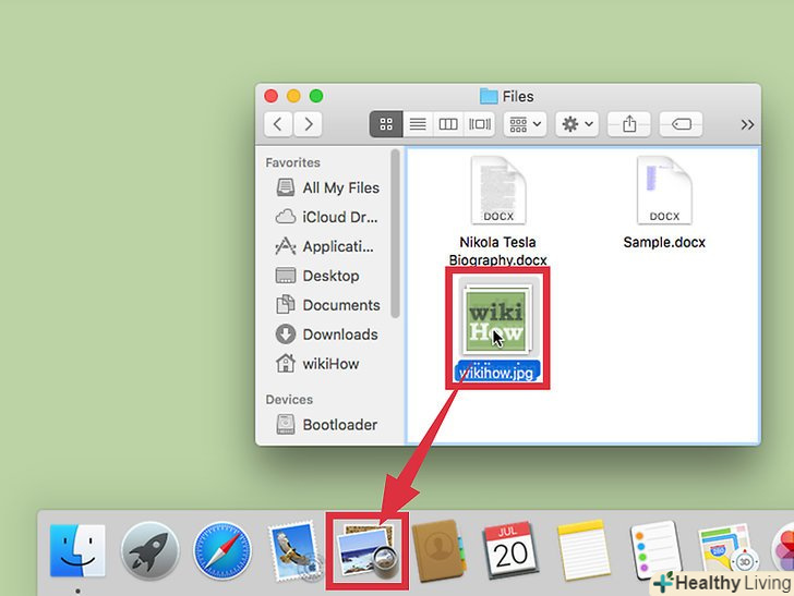 Перетягніть зображення на значок Preview в Dock або Finder.[1] цим ви відкриєте зображення в додатку "Preview".- Також можна натиснути на зображення правим клацанням миші і натиснути "Відкрити за допомогою..." і вибрати "Preview".