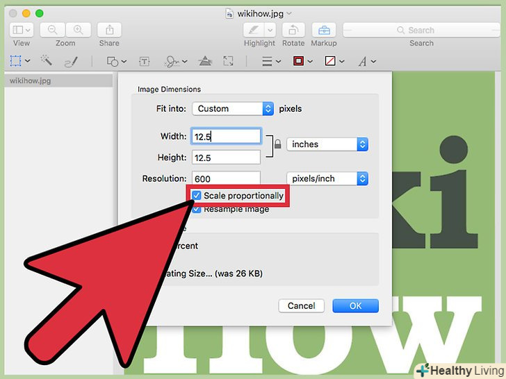 Поставте галочку поруч з опцією "змінити масштаб пропорційно", щоб не спотворити зображення. [3] робити цього не обов'язково, але так ви будете впевнені, що зміна параметра ширини також торкнеться і висоту. Це гарантує, що зображення збереже свої початкові пропорції.
