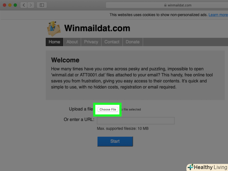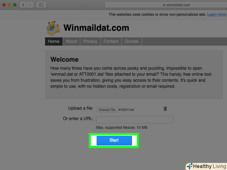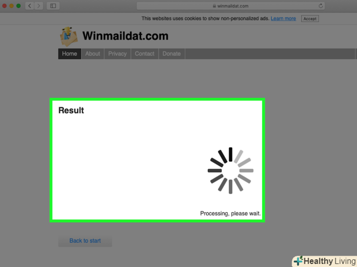 Клацніть поStart (почати). це Синя кнопка на сайті winmaildat.com. запуститься процес вилучення даних з файлу; він займе деякий час.