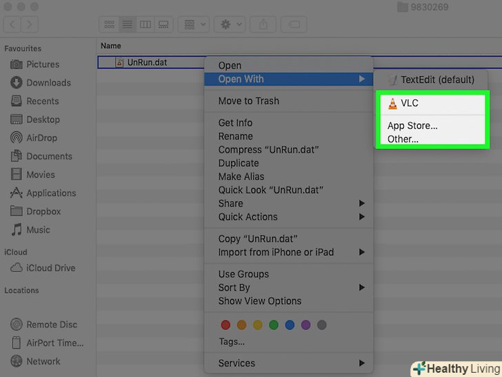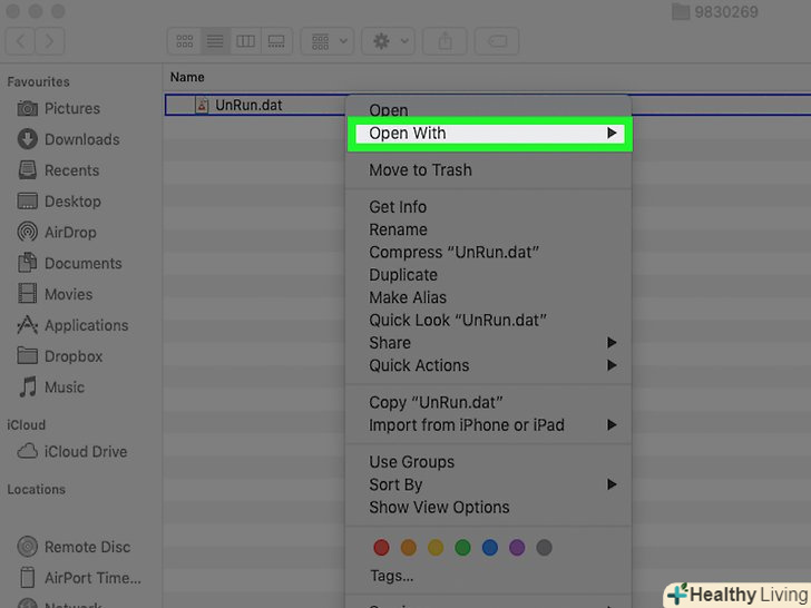 Клацніть правою кнопкою миші по dat-файлу.відкриється меню.- Якщо у вас миша Apple Magic Mouse або Macbook з трекпадом, клацніть по трекпаду або миші двома пальцями.
