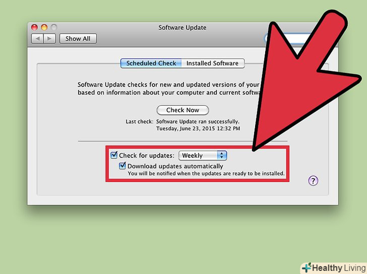 Ви можете задати частоту оновлення програмного забезпечення або включити автоматичне оновлення.- Поставте прапорець у "Check for updates", а потім в меню праворуч виберіть частоту оновлення (щодня, щотижня або щомісяця).