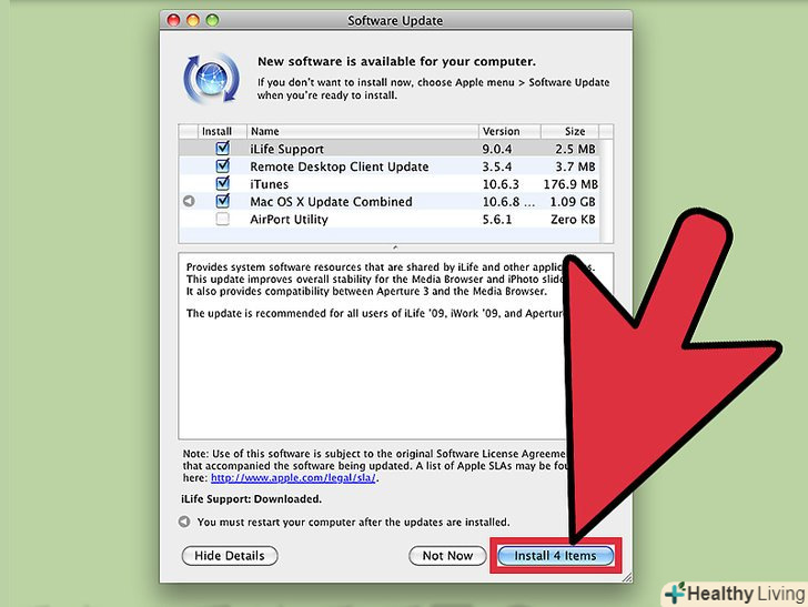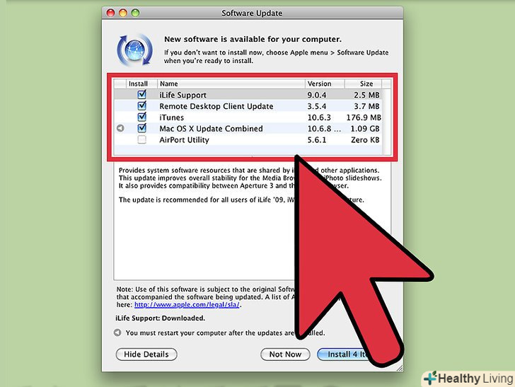 Ви берете всі доступні оновлення (рекомендується) або тільки певні оновлення.- Поставте прапорець біля кожного оновлення, яке ви хочете встановити. Якщо ви не впевнені, які оновлення вибрати, почитайте Опис оновлення.