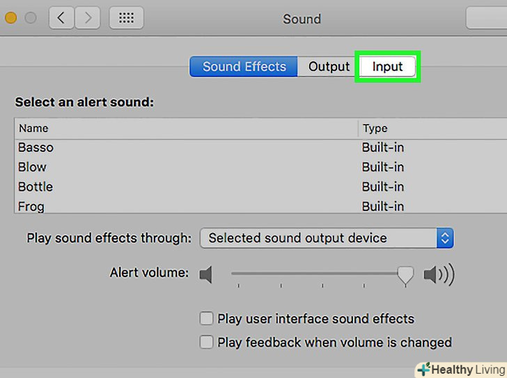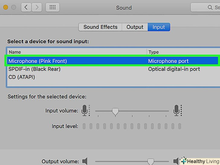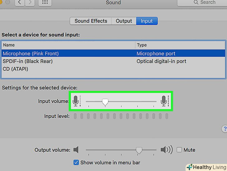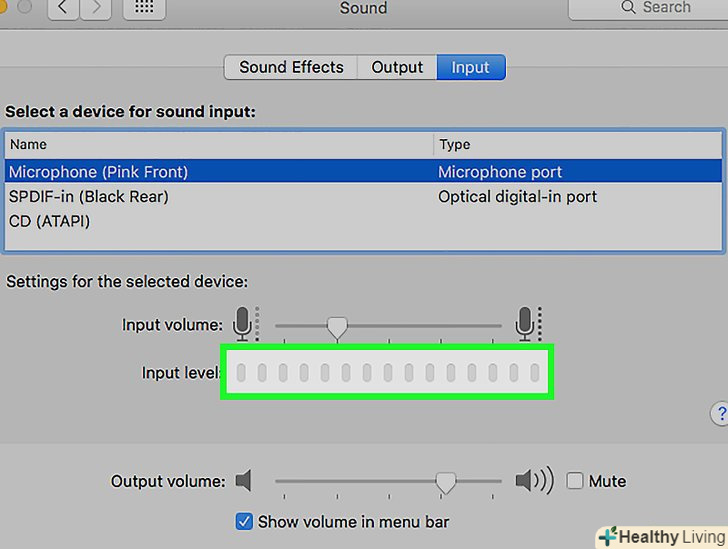 Виберіть мікрофон.всі доступні мікрофони і вхідні аудіопристрої будуть вказані в меню у верхній частині вікна. Виберіть той, який хочете використовувати.- Якщо Mac має вбудований мікрофон, він буде позначений як "вбудований мікрофон".