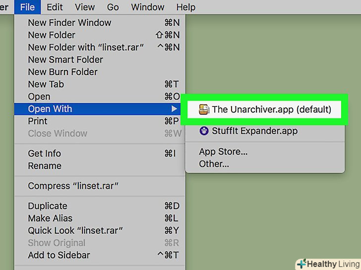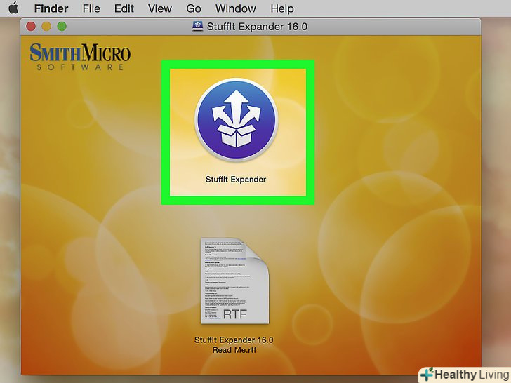 Двічі клацніть по RAR-файлу.відкриється вікно архіватора StuffIt Expander і почнеться витяг файлів з RAR-архіву.- Якщо архіватор StuffIt Expander не запустився, клацніть правою кнопкою миші (або затисніть Control і клацніть лівою кнопкою миші) по RAR-архіву і виберіть «Відкрити за допомогою» gt; «StuffIt Expander».