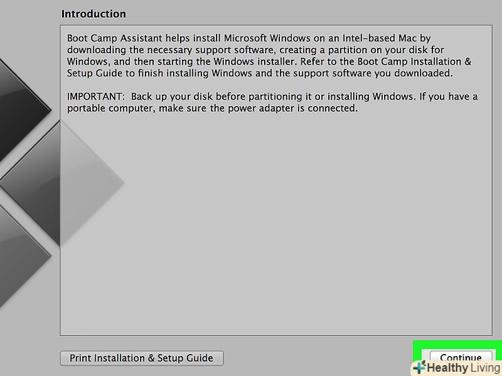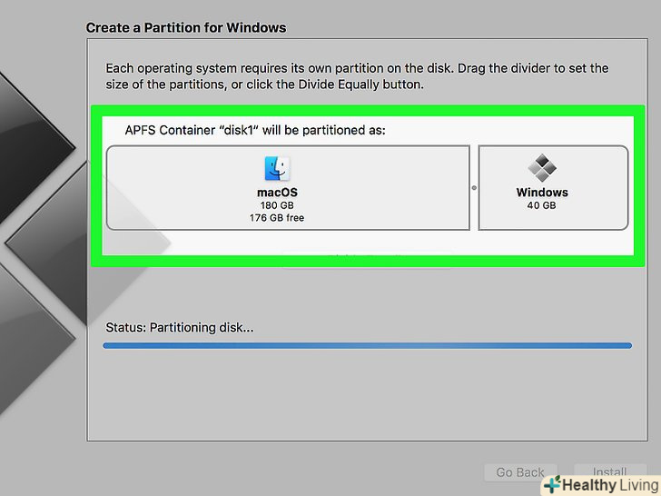 Дочекайтеся, поки комп'ютер перезавантажиться.коли ви закінчите налаштовувати Boot Camp, вам буде запропоновано перезавантажити комп'ютер. Потім на екрані відобразиться майстер установки Windows.[2]