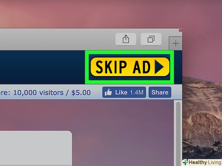 НатиснітьSKIP AD (пропустити рекламу). це посилання відобразиться в правому верхньому куті екрану через п'ять секунд.- Не клацайте по вікну з рекламою. Дочекайтеся, коли з'явиться кнопка SKIP AD (пропустити рекламу).