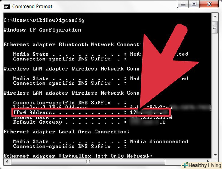 Введіть ipconfig і натисніть Enter.у списку ви побачите " IPv4 Address. . . ."Це буде адреса вашого цільового комп'ютера.