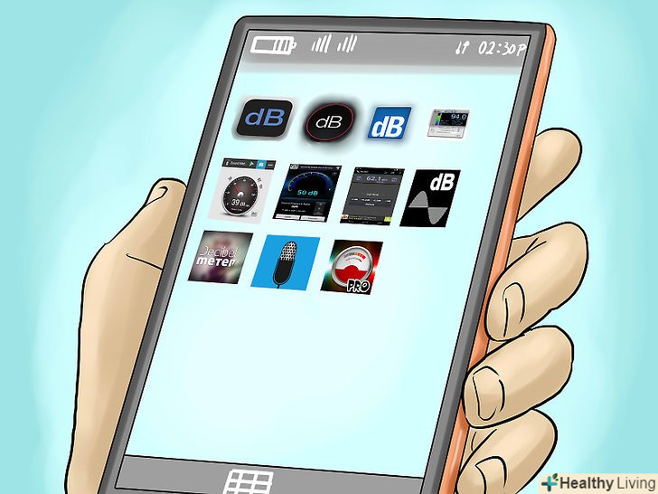 Використовуйте мобільний додаток.для вимірювання рівня звуку в будь-якому місці, мобільні додатки припадуть як не можна ДО РЕЧІ. Мікрофон на вашому мобільному пристрої швидше за все не дасть такої якості, як зовнішній мікрофон, підключений до комп'ютера, але він може бути напрочуд точним. Наприклад, точність зчитування на мобільному телефоні цілком може відрізнятися на 5 децибел від професійного обладнання. [5] нижче наведено список програм для зчитування рівня звуку в децибелах для різних мобільних платформ:- Для пристроїв Apple: Decibel 10th, Decibel Meter Pro, DB Meter, Sound Level Meter